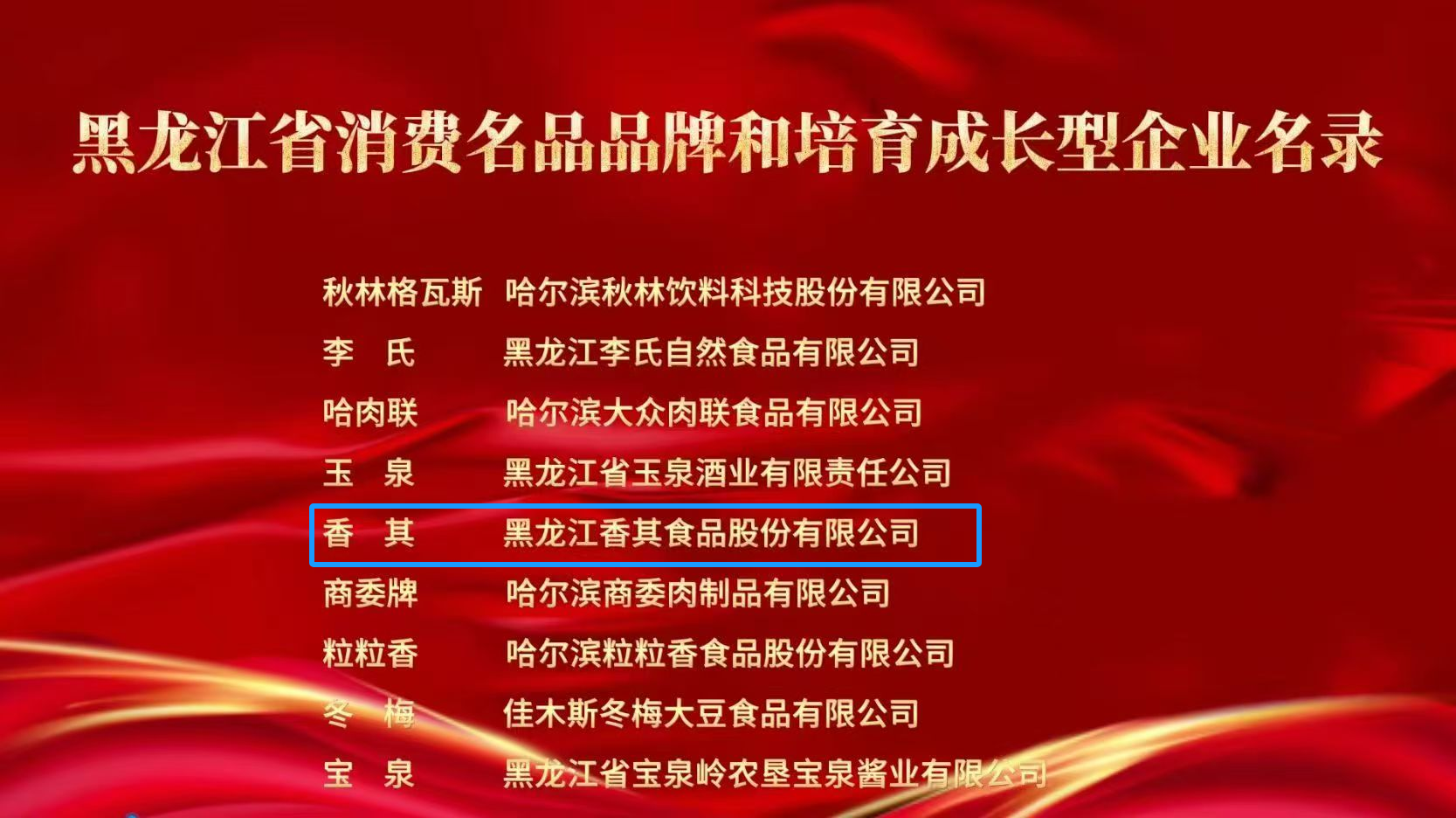 香其食品獲評(píng)“黑龍江省消費(fèi)名品培育成長(zhǎng)型企業(yè) ”